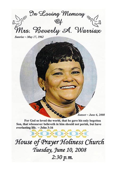 BEVERLY PASSED AWAY ON JUNE 6TH, 2008.